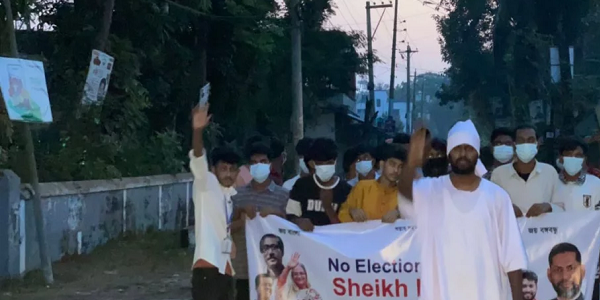 কাফনের কাপড় পরে ছাত্রলীগের ঝটিকা মিছিল