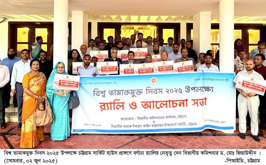 আজ সোমবার(০২ জুন) চট্টগ্রাম সার্কিট হাউসের সম্মেলন কক্ষে বিভাগীয় কমিশনারের আয়োজনে এবং বিভাগীয় তামাক নিয়ন্ত্রণ আইন বাস্তবায়ন টাস্কফোস কমিটির সহযোগিতায় বিশ্ব তামাকমুক্ত দিবস উপলক্ষে “তামাক কোম্পানির কুটকৌশল উন্মোচন করি তামাক ও নিকোটিনমুক্ত বাংলাদেশ গড়ি“ এই প্রতিপাদ্যে আলোচনা সভায় প্রধান অতিথির বক্তব্যে বিভাগীয় কমিশনার ড. মোঃ জিয়াউদ্দীন এই সব কথা বলেন।