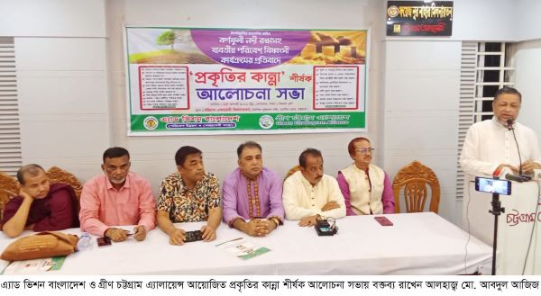 প্রেস বিজ্ঞপ্তি: চট্টগ্রামের জলবায়ু পরিবেশ, প্রকৃতি ও কৃষি বিষয়ক স্বেচ্ছাসেবী সংগঠন এ্যাড ভিশন বাংলাদেশ ও গ্রীণ চট্টগ্রাম এ্যালায়েন্সের যৌথ উদ্যোগে কর্ণফুলী নদী রক্ষাসহ পরিবেশ বিধ্বংশী কার্যক্রমের প্রতিবাদে “প্রকৃতির কান্না” শীর্ষক অনুষ্ঠান সোমবার(২৫ আগস্ট)বিকাল ৪টায় নগরীর মোমিন রোডস্থ চট্টগ্রাম একাডেমি হলে অনুষ্ঠিত হয়।এতে সভাপতিত্ব করেন সংগঠনের ভারপ্রাপ্ত চেয়ারম্যান আলহাজ্ব সাজেদুল আলম চৌধরী মিল্টন।